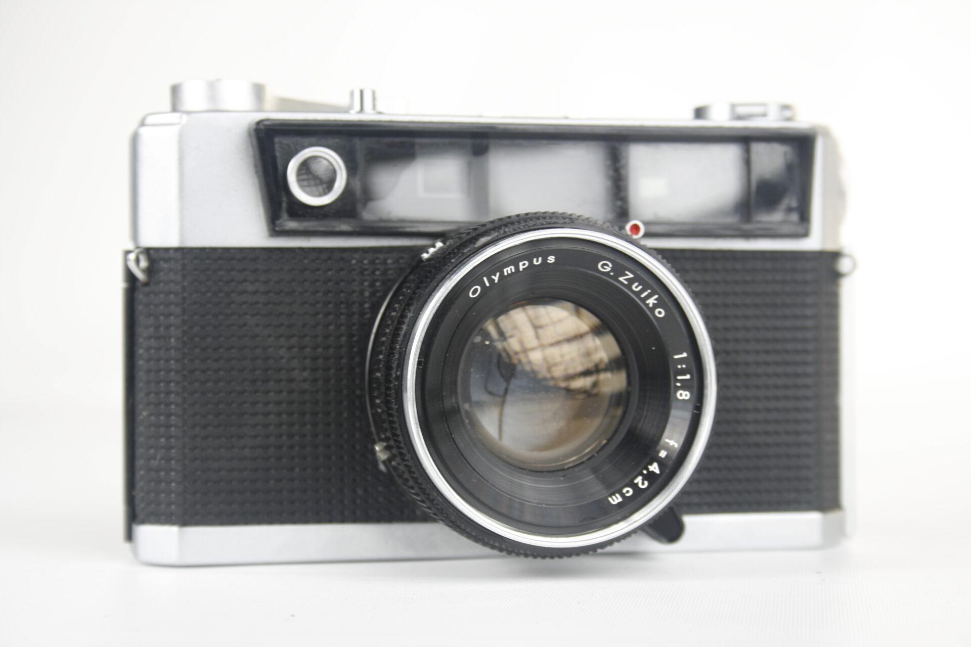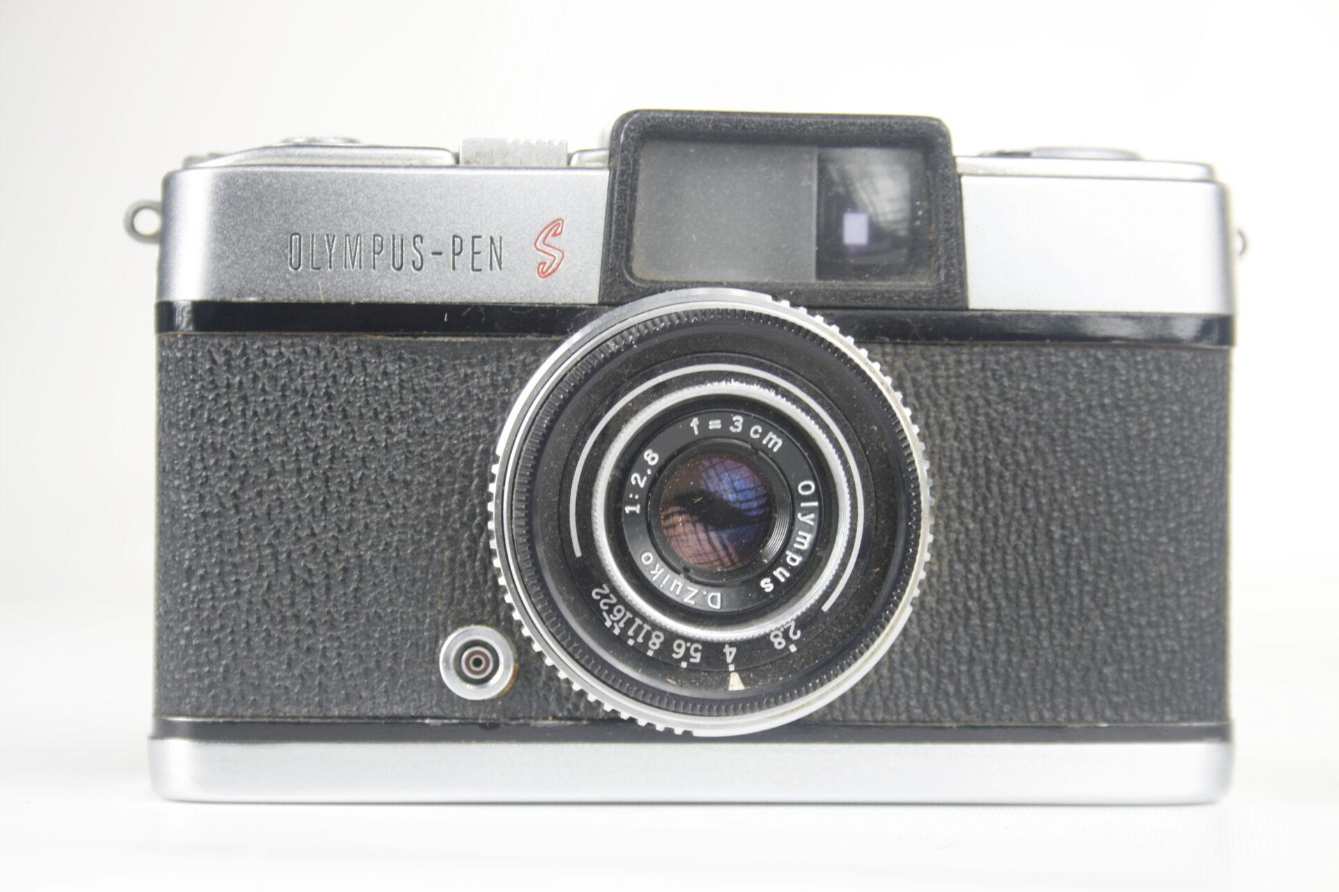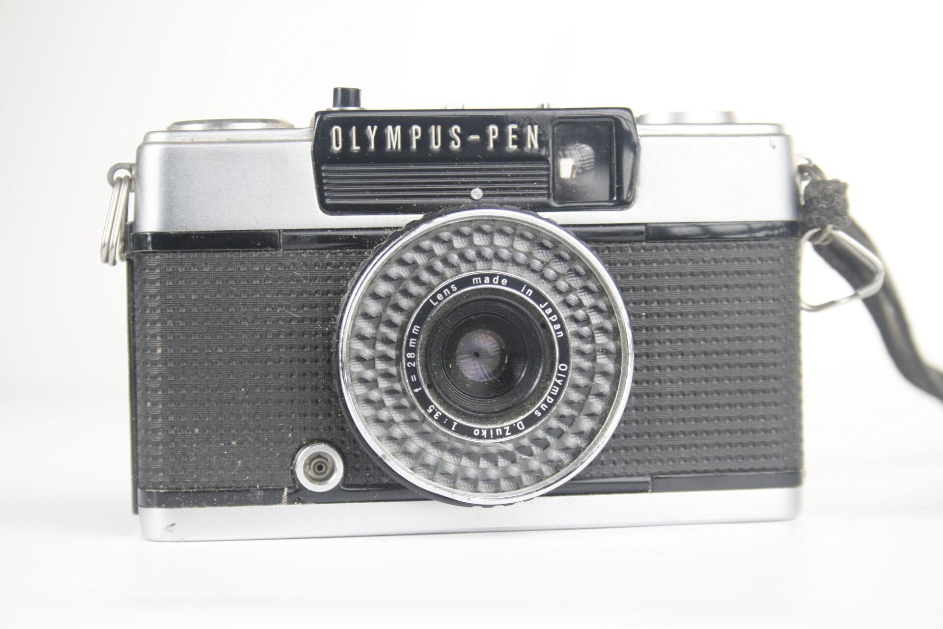 De eerste innovatieve cameraserie van Olympus was de Pen , gelanceerd in 1959. Hij gebruikte een half-frame-formaat en maakte 72 foto’s van 18 x 24 mm op een standaard 35 mm- filmcassette met 36 belichtingen. Pen-camera’s worden compact en draagbaar gemaakt.