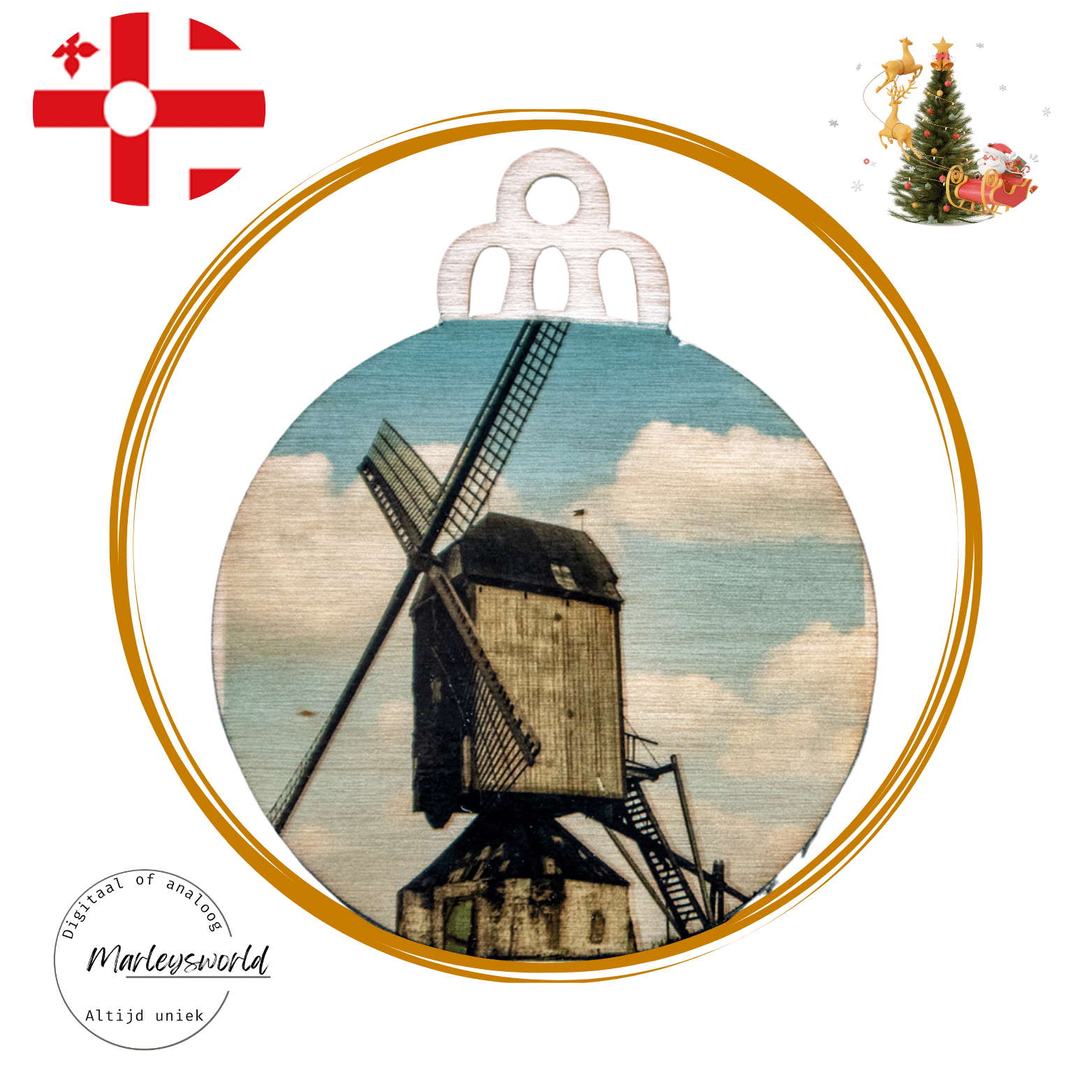 Houten kerstbal met afbeelding van de Molen uit de Molenstraat in Rosmalen.
