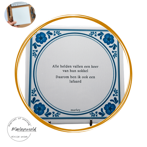 Uit het eigen spreukenboek van “Marleyart”. Een unieke tegel. Kan zowel op de plee, maar boven het bed zou het ook niet misstaan.