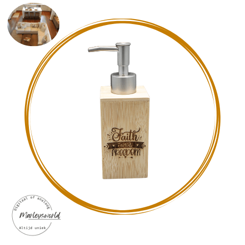 Zeepdispenser. Bamboe. Faith family freedom.