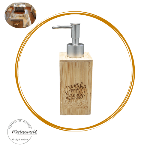 Zeepdispenser. Bamboe. Wash your hands, ya filthy animal.