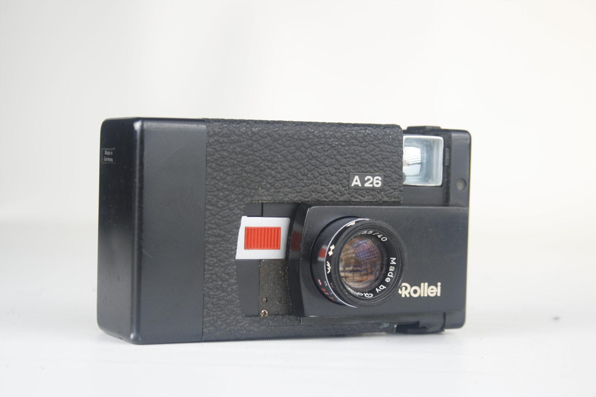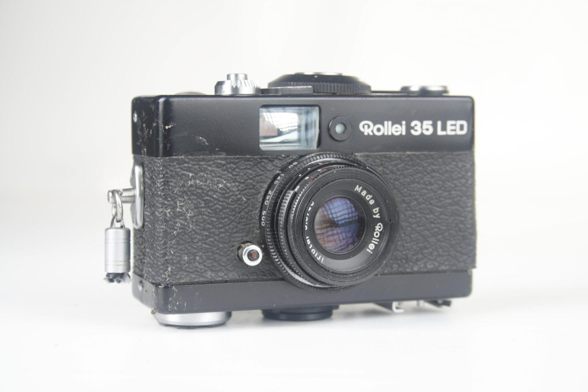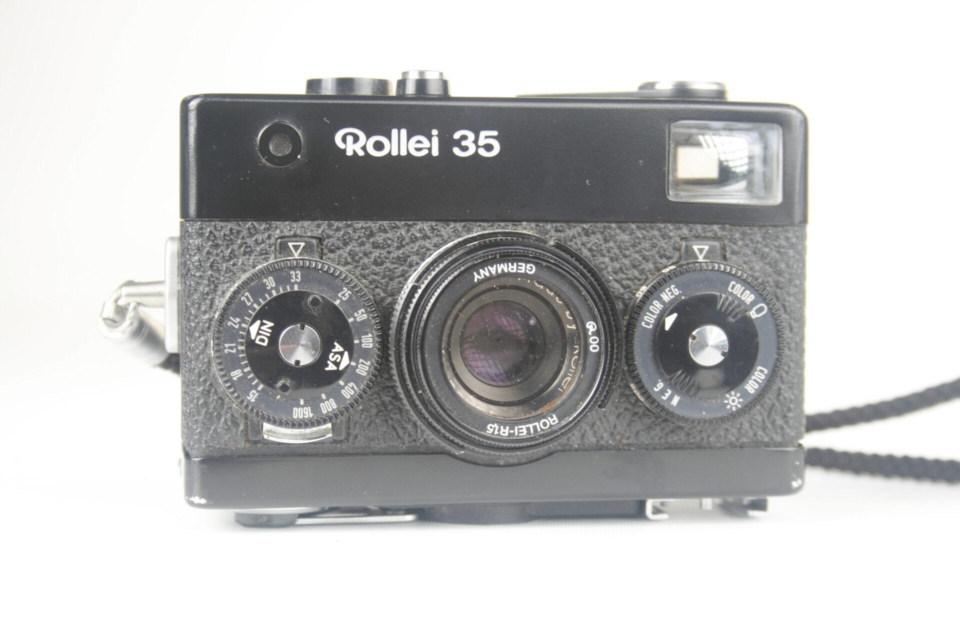 - Rollei 35 compacte originele zoeker (Duitsland) met 40mm f/3.5 Carl Zeiss Tessar . Het is een van de meest compacte 35mm camera’s die er zijn. De hoogwaardige kwaliteit en het zeer stijlvolle ontwerp maken hem zeer verzamelwaardig.