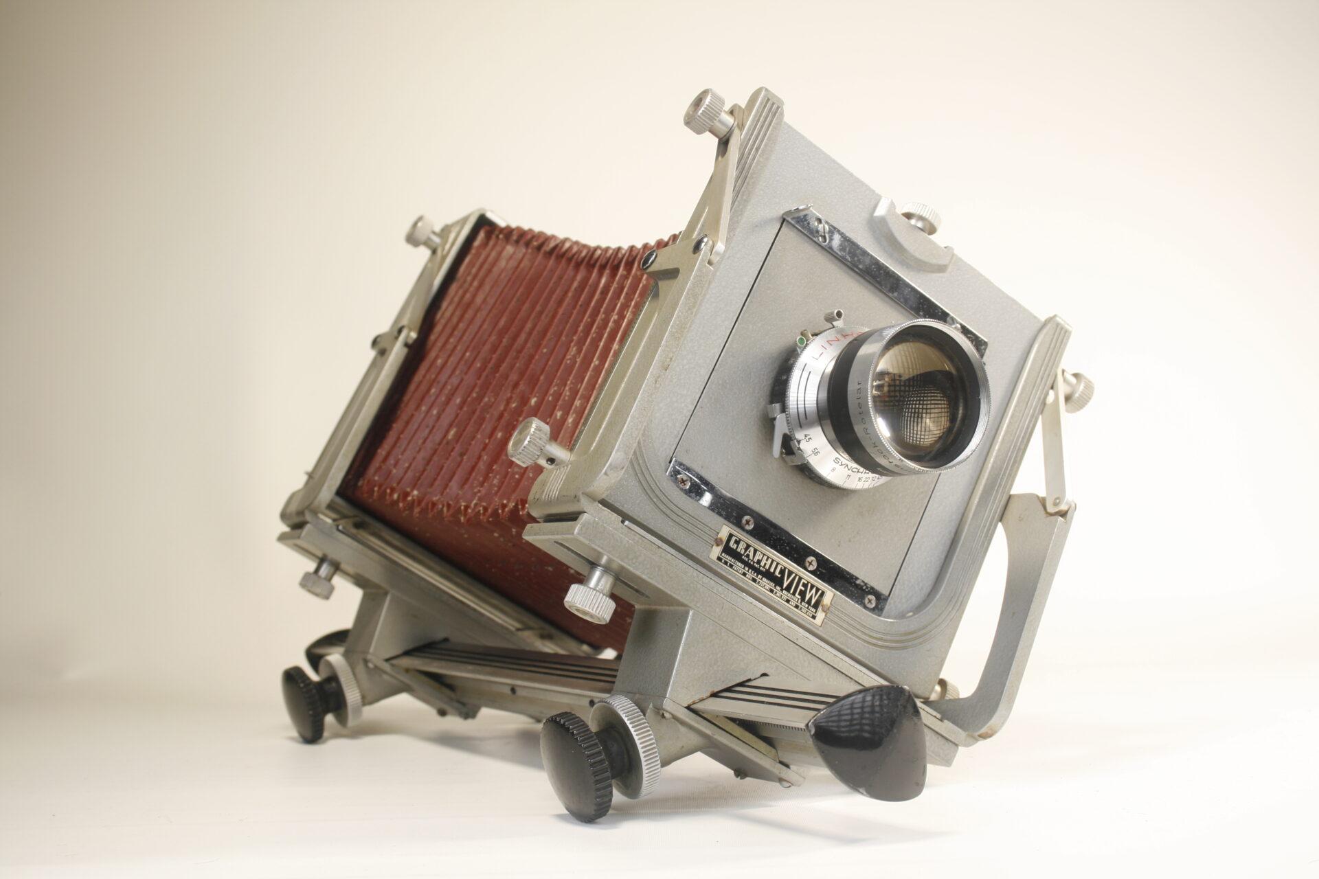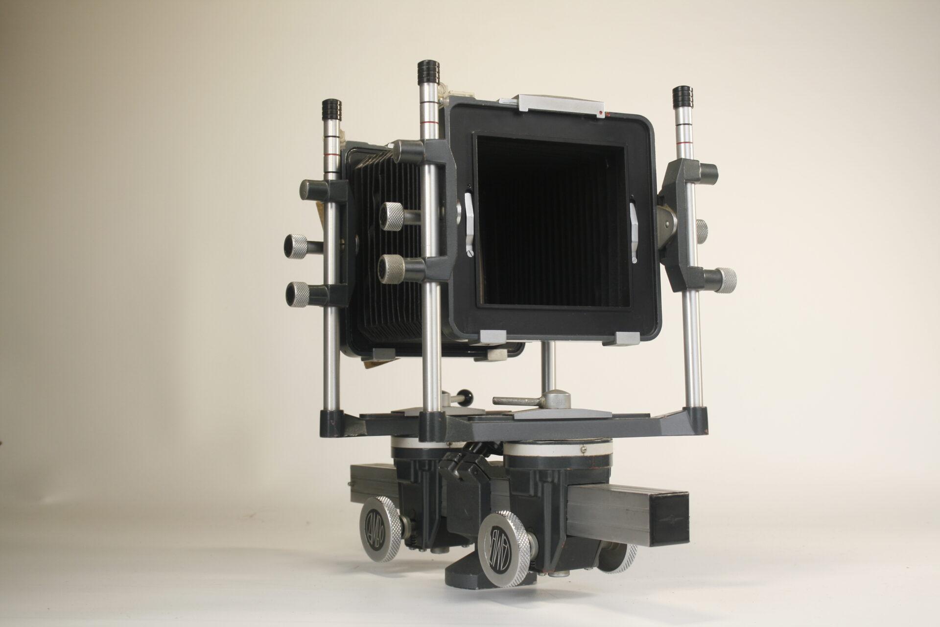 Deze worden verbonden met een balg. Door de beeldvlak-staander te verplaatsen over de balk of bankstuk kan men scherpstellen.